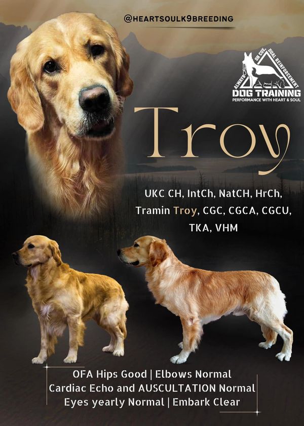 A striking, male Golden Retriever with a regal presence and a heart as golden as his coat. This distinguished dog combines outstanding athletic achievements with a warm, friendly temperament. Known for his love of water, people, and pets, he embodies the ideal balance of drive, trainability, and affection.